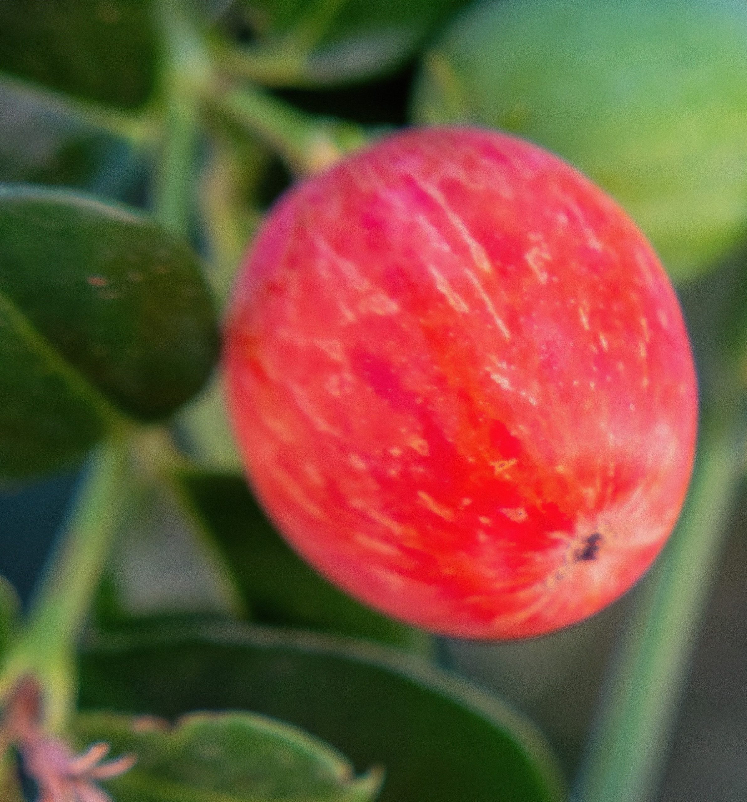 The plants first bear fruit after growing about 3–4 years,[5] and produce two crops per year, after the end of the rainy season. This evergreen plant produces small, red berries, while white flowers are produced for many months of the year.